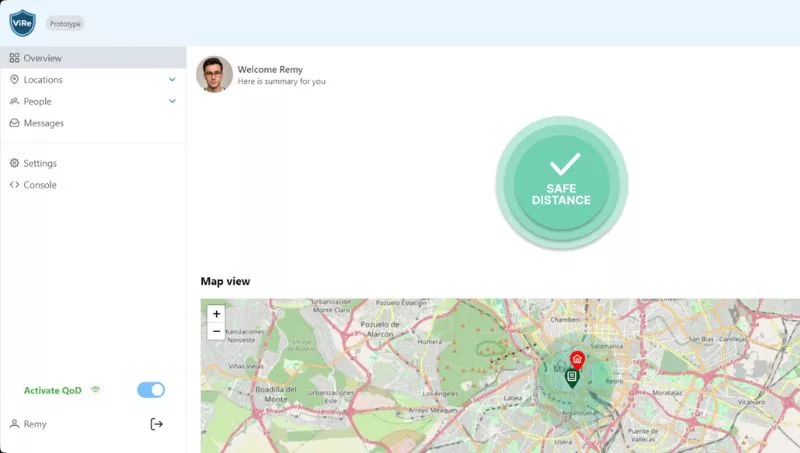 ViRe es una aplicación móvil multi-operador que informa en tiempo real a las personas protegidas por órdenes de alejamiento de la proximidad de aquellos individuos identificados como potencialmente peligrosos, garantizando en todo momento un entorno seguro a las víctimas. La aplicación también alerta a las fuerzas del orden y, opcionalmente, a las personas seleccionadas por la víctima, como familiares, amigos o compañeros de trabajo, ofreciendo así una protección adicional. Asimismo, permite catalogar lugares concretos como seguros y verificar el estado de espacios públicos independientemente de las fronteras, ya que se basa en API universales estándar y funciona en todos los países. También puede configurarse para vigilar lugares relacionados con la víctima, aunque ésta no se encuentre físicamente en ellos, como su domicilio o lugar de trabajo.