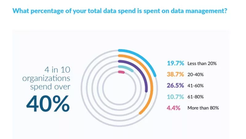 ● Las organizaciones dedican hasta un 40% de su tiempo sólo a la gestión de datos. Esto está provocando que muchas empresas financieras inviertan esfuerzos que se alejan de la innovación empresarial y la toma de decisiones, y que aumenten los costes y el tiempo en la gestión de datos en la nube.