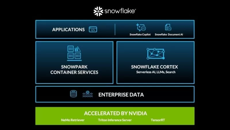 La computación acelerada de NVIDIA impulsa varios de los productos de IA de Snowflake, incluido Snowpark Container Services, así como: