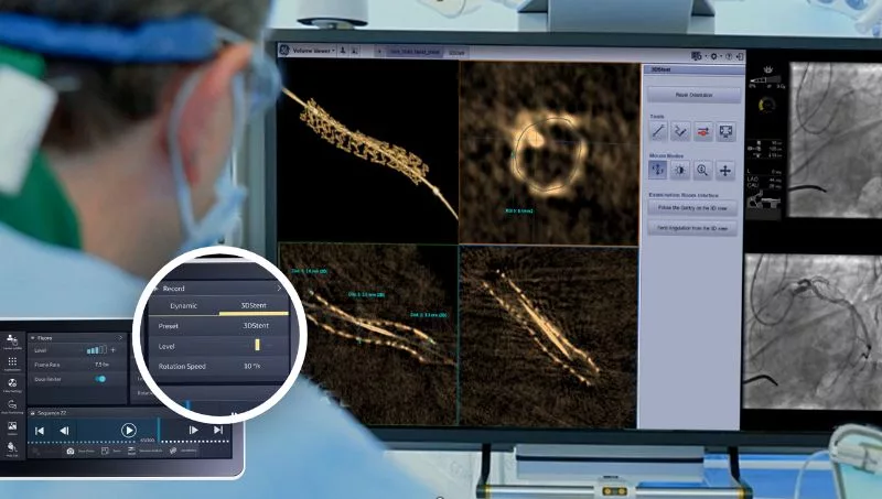 Con 3DStent, la imagen se adquiere mediante una rotación automatizada del arco en C, lo que proporciona imágenes en 3D y de cortes múltiples que permiten a los profesionales sanitarios ver el stent desde cualquier ángulo. Para el Dr. Salvatore Brugaletta, cardiólogo intervencionista en el Hospital Clínic de Barcelona, “esta herramienta nos ayuda a realizar un procedimiento óptimo, es muy fácil de utilizar y requiere solo unos segundos para la interpretación de las imágenes”.
