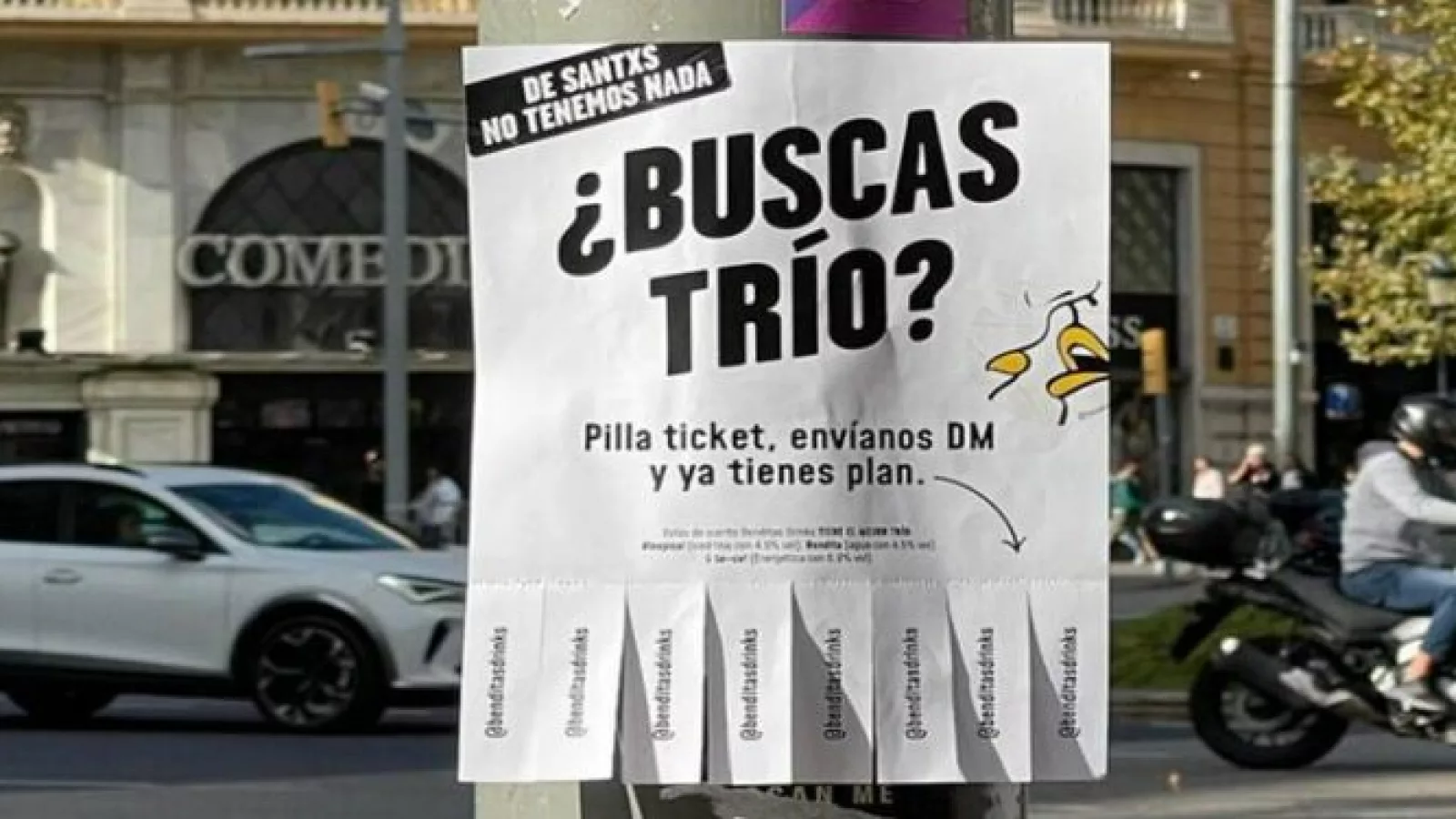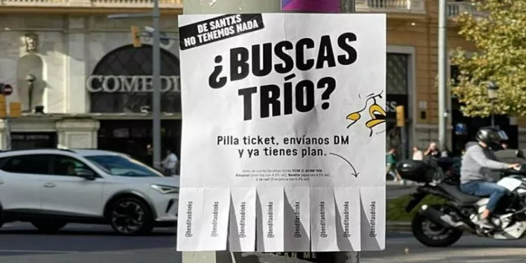 Benditas Drinks promociona sus bebidas a través de una disruptiva campaña de marketing online y offline. La empresa de ‘alcoholic drinks & low calorie’ ha empapelado las principales arterias comerciales del centro de Barcelona bajo el lema: ¿Buscas Trío?