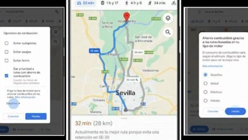 Cuando queremos movernos de un lugar a otro y le preguntamos a Google Maps cómo llegar, la aplicación ofrece distintas opciones de navegación, como ir andando, en bicicleta, en transporte público o en coche. Pero ¿y si hubiera otras opciones? Por ejemplo, ¿una ruta por la que tardas 9 minutos más, pero que te ahorra casi un 30% de combustible?