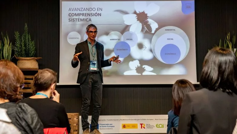 “Cuando un sistema debe evolucionar, lo primero que necesita es estar vivo y ser resiliente para afrontar los desafíos futuros”, explicaba Rafa Cobo, Regenerative Lead en Impact Hub. Este experto en economía regenerativa aboga por crear espacios de vitalidad y viabilidad que generen una evolución del territorio, en los que se involucren tanto emprendedores como pymes, grandes empresas, Administraciones públicas, el mundo académico y la ciudadanía en general. De este modo, al situar el poder de lo local en el centro de la toma de decisiones, los territorios se desarrollan con un enfoque sistémico, y las iniciativas no solo son capaces de generar empleo o mejorar infraestructuras, sino también de fortalecer los lazos sociales y ambientales que sostienen a la comunidad.