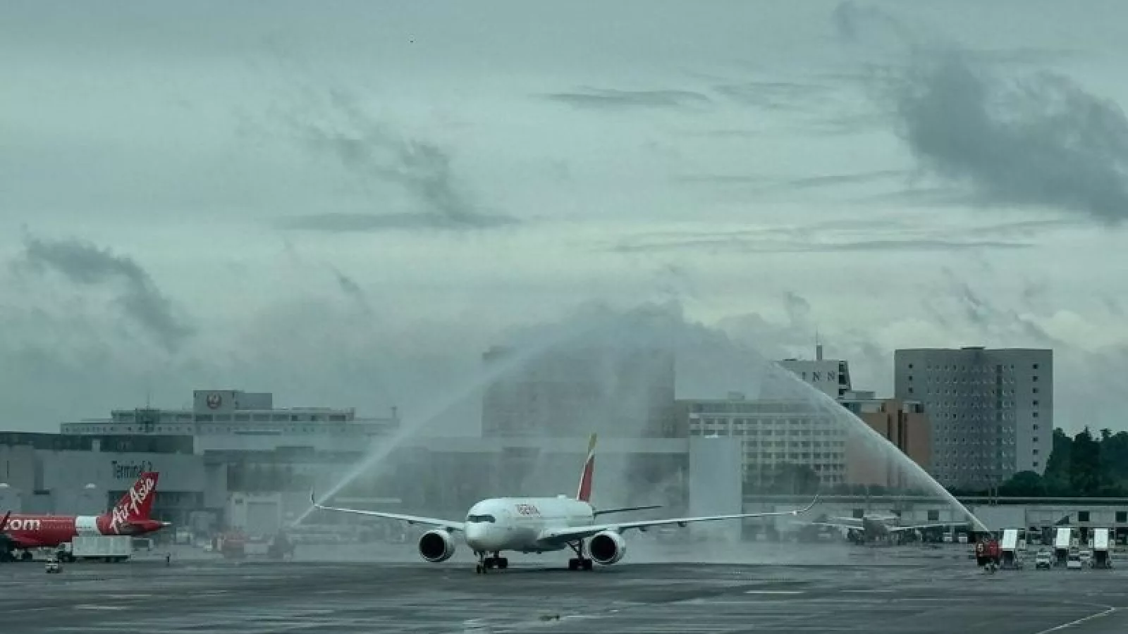 El primero de estos vuelos aterrizó esta mañana sobre las 10.00 horas local en Tokio con el 100% de su capacidad ocupada. A su llegada, fue recibido con el tradicional arco de agua que da por iniciada una nueva conexión.